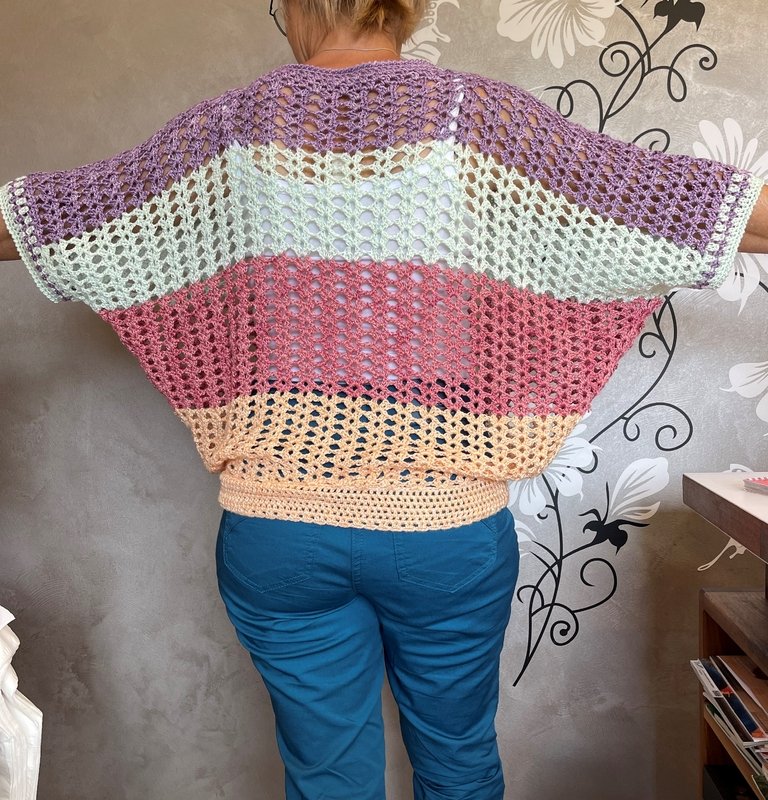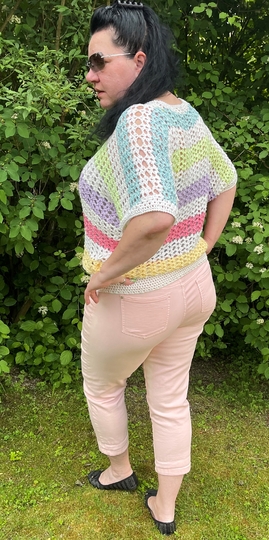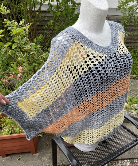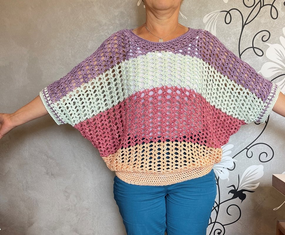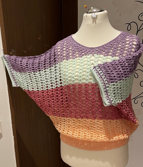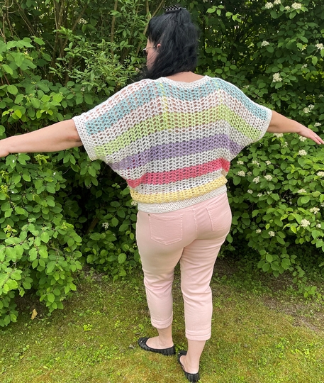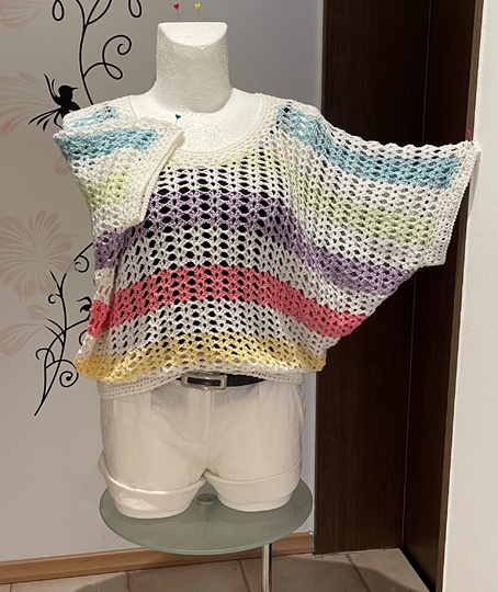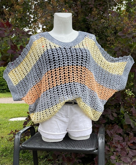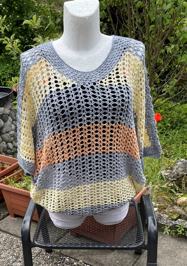 Ein lässig weitgeschnittenes Shirt im Over Size Style. Weite Fledermausärmel bieten dir ein super Tragevergnügen. Häkeln kannst du ein kurzes Shirt oder auch ein längeres Shirt.