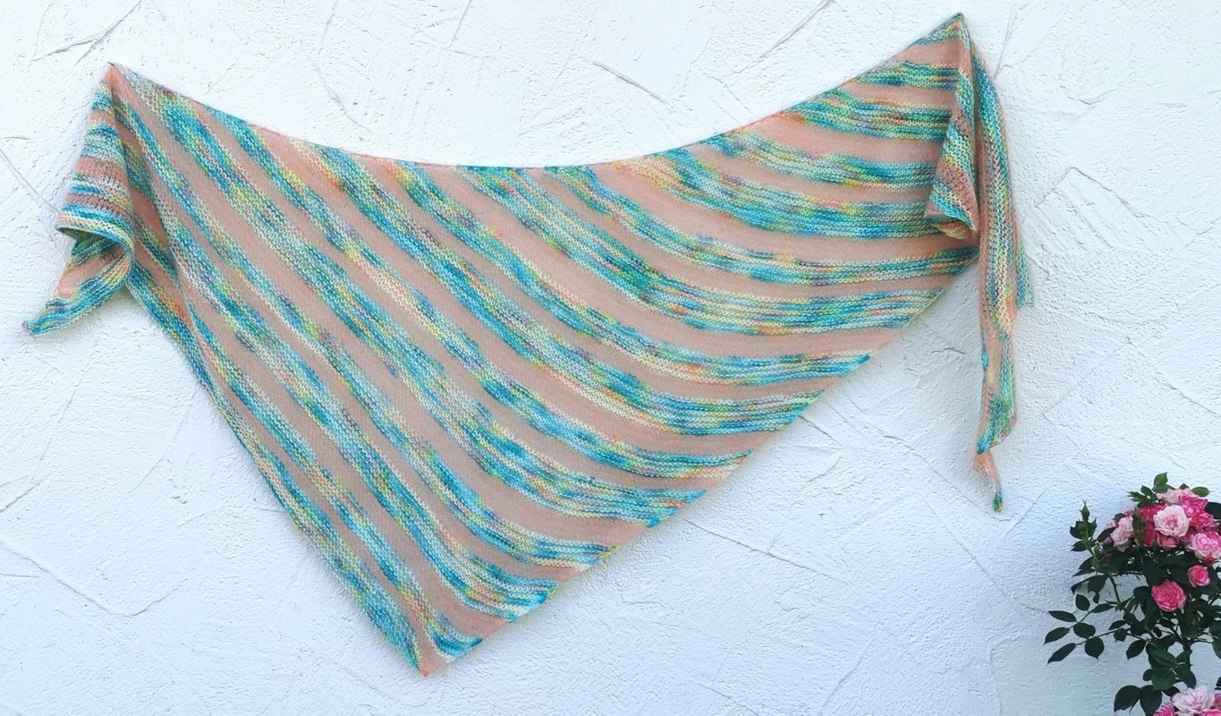In dieser Anleitung lernt ihr, wie ihr ein asymmetrisches Dreieckstuch im Streifenmuster stricken könnt.