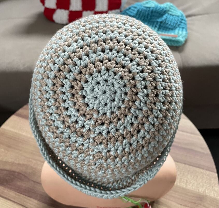 Man kann den Hut kleiner häkeln, indem man dünneres Material verwendet.