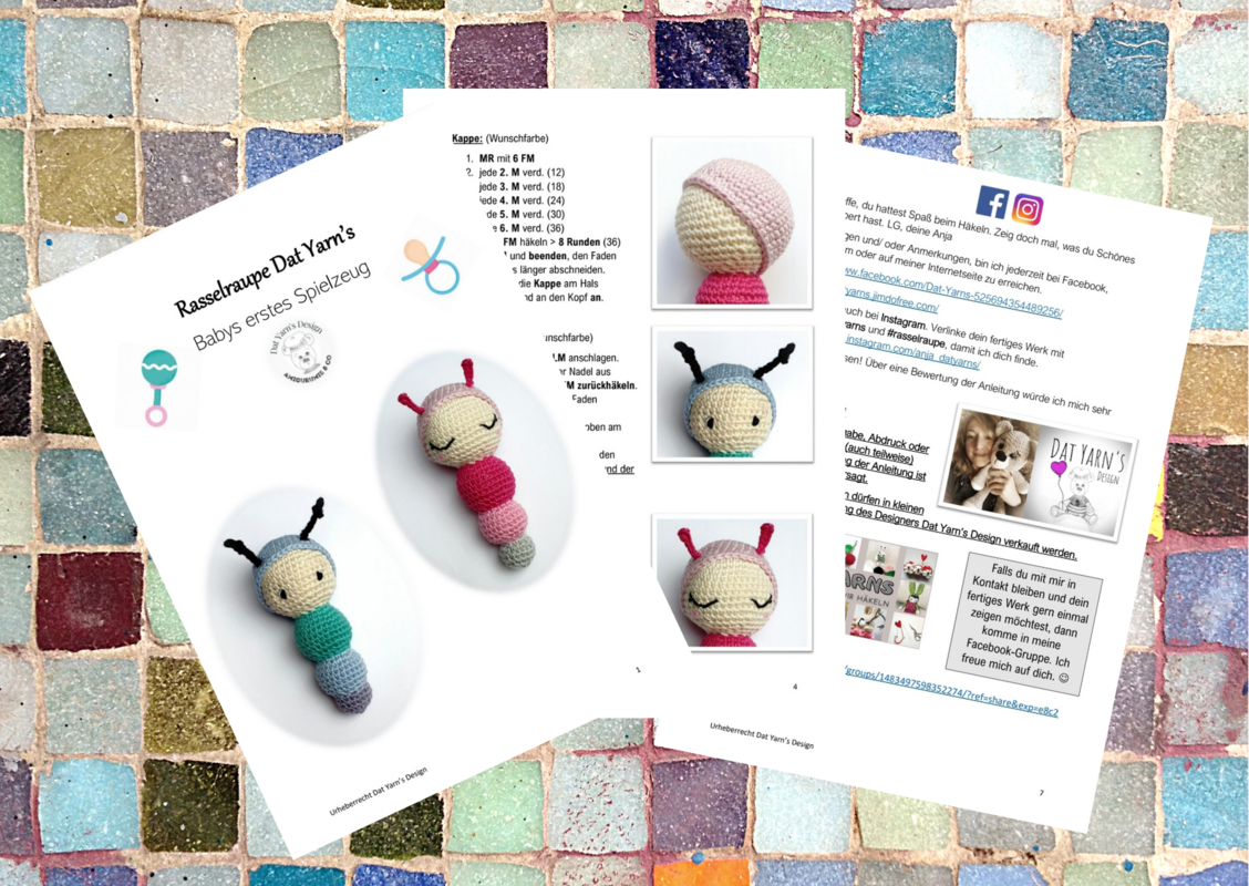 Die fertigen Rasseln dürfen in kleinen Mengen mit Nennung des Designers Dat Yarn’s Design verkauft werden.