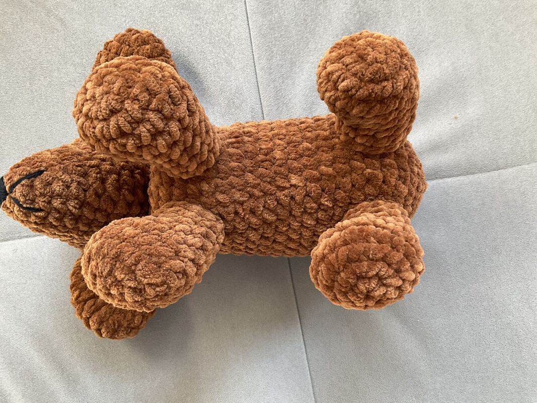 • Material: Chenillewolle braun (1x100g), Reste von schwarzem Baumwollgarn für die Nase