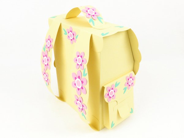 Ich habe den Ranzen mit vielen Blumen dekoriert, die jeweils aus mehreren Elementen bestehen. Das bringt natürlich viel friemelige Schneidearbeit mit sich. Um dir die Arbeit zu erleichtern, kannst du die Deko entweder völlig anders gestalten oder sie auf einige wenige Blumen reduzieren.