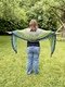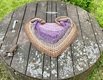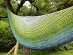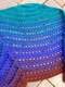Mein flaches Dreieckstuch hat eine Spannweite von 1,70m und eine Tiefe von 0,56m erreicht, gehäkelt mit NS 5 und einem 4-fädigen Bobbel mit 750m.