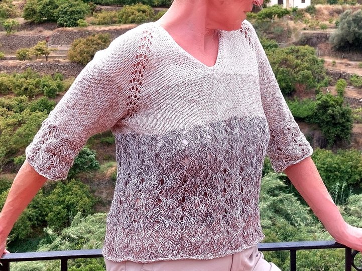 Das luftige Oversize Oberteil "Las Escalera" wird in Raglan von oben Technik gestrickt und kann so ganz leicht an alle Größen und Längen angepasst werden. Das Oberteil hat einen V-Ausschnitt und als Blickfang stricken wir in der Raglanschräge ein Ajourmuster. Wer es länger mag, strickt das untere Ajourmuster bis zur gewünschten Länge und erhält so eine Tunika. Der V-Ausschnitt wird mit einem I-Cord Rand gestrickt. Dazu habe ich eine Fotostrecke gemacht. Die Anleitung wurde Reihen/Rundenweise für Größe S-XXXL geschrieben. Strickschriften ergänzen die Strickanleitung. Zunächst stricken wir in Hin-und Rückreihen, später in Runden. Die Ärmel werden im Anschluss direkt angestrickt. Hier kann das Ajourmuster wiederholt werden. Bei Fragen stehe ich zeitnah zur Verfügung.