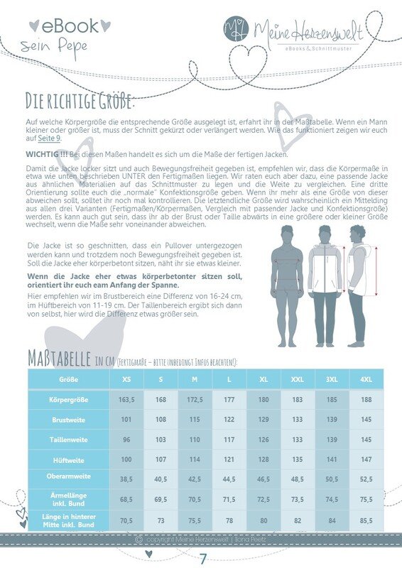Das eBook „sein Pepe“ beinhaltet ein Schnittmuster in den Größen XS-4XL.