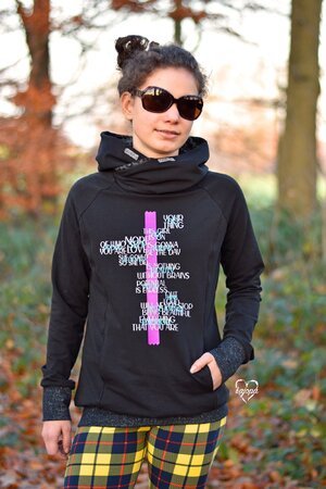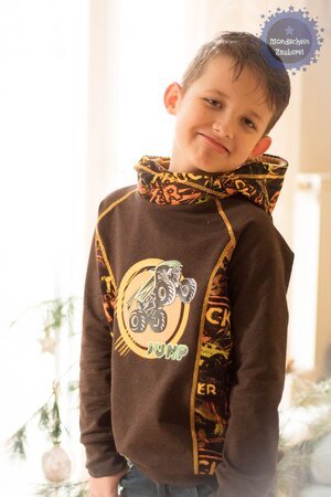 Damit kannst du unsere beliebte Wickelkapuze, die es eigentlich nur bei unserem Hoodie-Schnitt Vanja gibt, auch für unsere anderen Hoodies Nanuc und Paco nutzen. Bei diesen beiden Schnitten ist bisher nur eine sogenannte Astronautenkapuze (mit Steg unter dem Hals) enthalten. Natürlich ist es auch möglich, diese/n Kapuzen/Kragen an nahezu alle anderen Pulloverschnitte zu nähen. Da die Kapuze/der Kragen gewickelt wird, spielt die Weite des Halsausschnitts des Pullovers keine große Rolle.