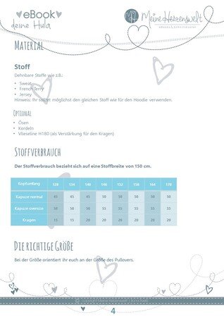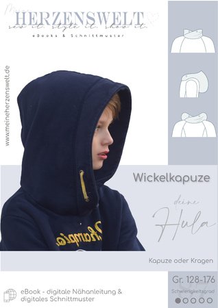 Mit diesem eBook bekommst du die Schnitte und die Anleitung zum Nähen einer Wickelkapuze/eines Wickelkragens. Die Besonderheit bei diesen Kapuzen/dem Kragen ist, dass sie durch das Wickeln (isländisch: hula) an nahezu jeden Pullover genäht werden können.