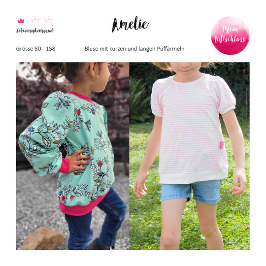 Die Bluse ist ein Schnittmuster für Mädchen von Grösse 80-158. Sie kann mit kurzen oder langen Puffärmeln genäht werden. Sie ist bequem, schlicht und trotz der Puffärmel ohne komplizierte Details. Jeder Schritt ist bebildert. Mit verschiedenen Stoffen, Bündchen, Applikationen, Taschen und Tüdeleien kannst du deiner Fantasie freien Lauf lassen und wunderbare Unikate nähen. Der Schnitt orientiert sich an der effektiven Grösse des Kindes und fällt eher gross aus. Jetzt brauchst du eigentlich nur Stoff, eine Nähmaschine und gute Ideen...