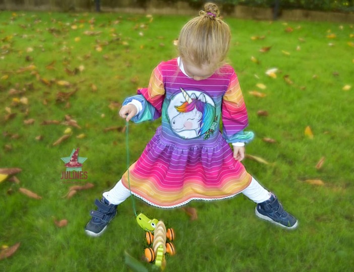 Das Kleid ist ein unkompliziertes Alljahreskleid von Grösse 80-158. Es wird mit kurzen oder langen Puffärmeln genäht. Es ist schlicht und ohne komplizierte Details. Jeder Schritt ist bebildert. Mit verschiedenen Stoffen, Bündchen, Applikationen, Taschen und Tüdeleien kannst du deiner Fantasie freien Lauf lassen und wunderbare Unikate nähen. Der Schnitt orientiert sich an der effektiven Grösse des Kindes. Jetzt brauchst du eigentlich nur Stoff, eine Nähmaschine und gute Ideen...