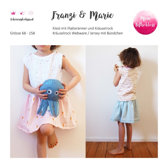 Das Kleid ist ein schlichtes Sommerkleid von Grösse 68-158. Es wird mit Flügelärmeln genäht. Der Rock ist ein unkompliziertes Sommerröckchen von Grösse 68-158. Der Bund ist elastisch zum Reinschlüpfen. Die Länge kann selbst noch variiert werden. Das Ebook braucht kein Schnittmuster, also drucken, kleben und so weiter fallen weg. Beide Teile sind schlicht und ohne komplizierte Details. Jeder Schritt ist bebildert. Mit verschiedenen Stoffen, Bündchen, Applikationen, Taschen und Tüdeleien kannst du deiner Fantasie freien Lauf lassen und wunderbare Unikate nähen. Die Schnitte orientiert sich an der effektiven Grösse des Kindes. Jetzt brauchst du eigentlich nur Stoff, eine Nähmaschine und gute Ideen...