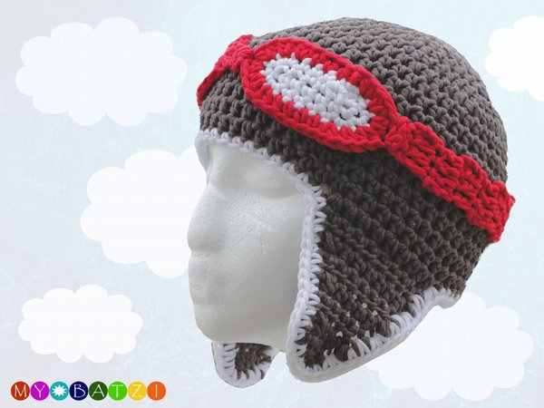 Mit dieser Häkelanleitung kannst du eine raffinierte Jungenmütze häkeln. Durch die langen Ohren und die Brille erinnert die Mütze an Fliegermützen bzw. Rennfahrermütze aus den frühen Jahren der Fliegerei und Autorennen. Dabei werden praktischerweise auch noch die Ohren des Trägers schön warm gehalten. Die Mütze kann mit Winterwolle, sowie Sommerwolle gehäkelt werden.