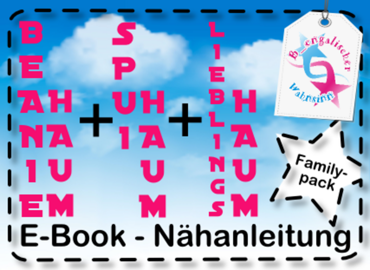 Mit diesem Kauf erhaltet ihr alle 3 Ebooks, jeweils mit bebilderter Schritt - für - Schritt - Anleitung sowie Schnittmuster.