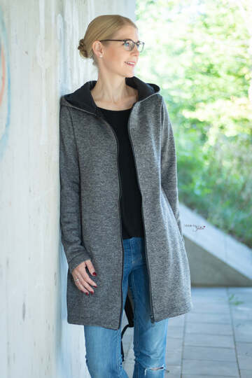 Mit Claire bekommst Du einen Schnitt für eine lange Kapuzen-Sweatjacke. Sie ist extra lang geschnitten, hat eine Oversize-Kapuze und einen Schwalbenschwanz – damit ist ein lässiger Style garantiert. Du kannst sie im Herbst oder Frühjahr, aber auch als Jackenersatz tragen. Für die Taschen stehen Dir zwei Varianten zur Auswahl.