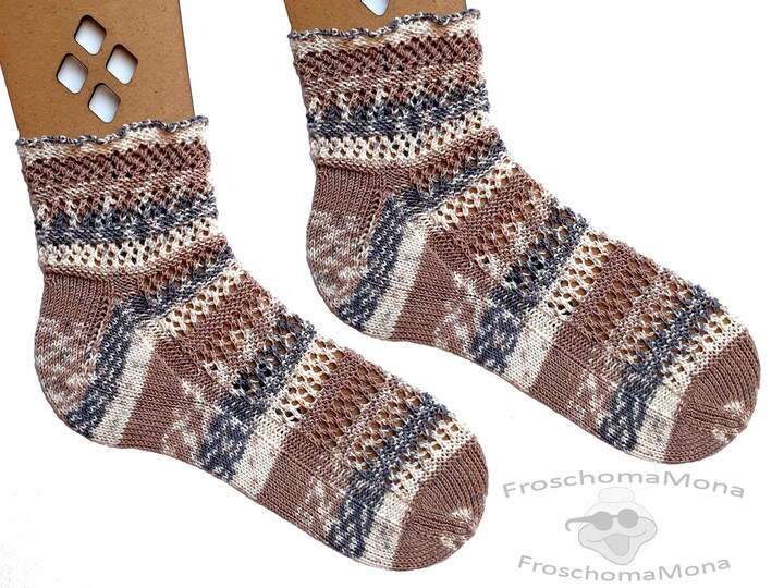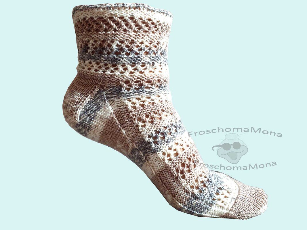Gestrickt habe ich die Socken in Größe 38/39 mit 60 Maschen.