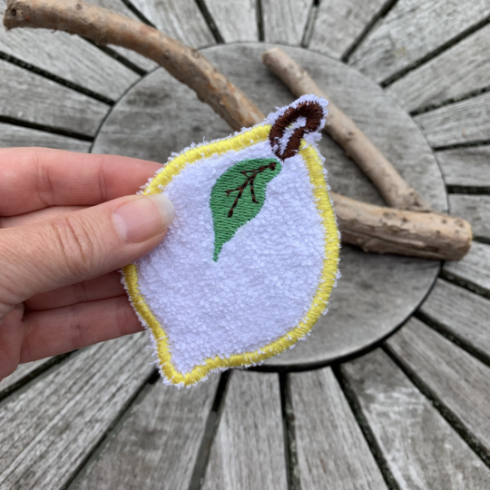 Zitronen-WaschPad als ITH-Datei d.h. er wird komplett in der Stickmaschine hergestellt.