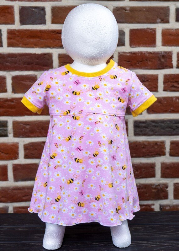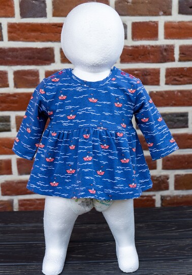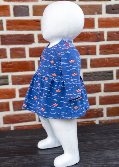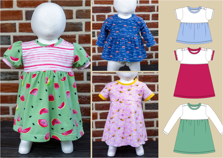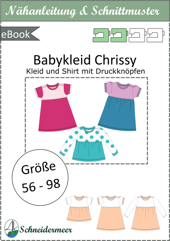 Das Modell „Chrissy“ ist ein Jerseykleid für Babys. Die Teilungsnaht des Kleides ist im Empire-Stil (erhöhte Taille) und kann wahlweise mit einem gekräuselten oder einem einfachen Rockteil genäht werden. „Chrissy“ kann sowohl als Shirt als auch als Kleid genäht werden.
