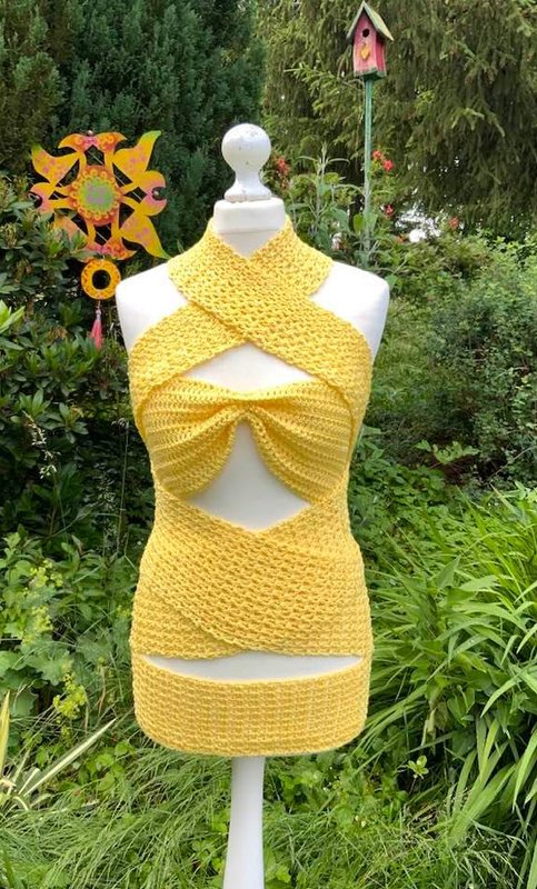 Shirt "Kleopatra" raffiniert + elegant....eine Anleitung eher für schlanke Frauen mit kleiner Brust geeignet..Toll für heiße Sommertage ....das extravagante TOP ist einfach zu häkeln....super für den Strand...oder eine Sommerfest