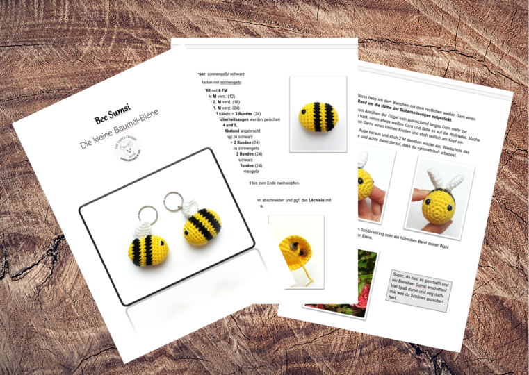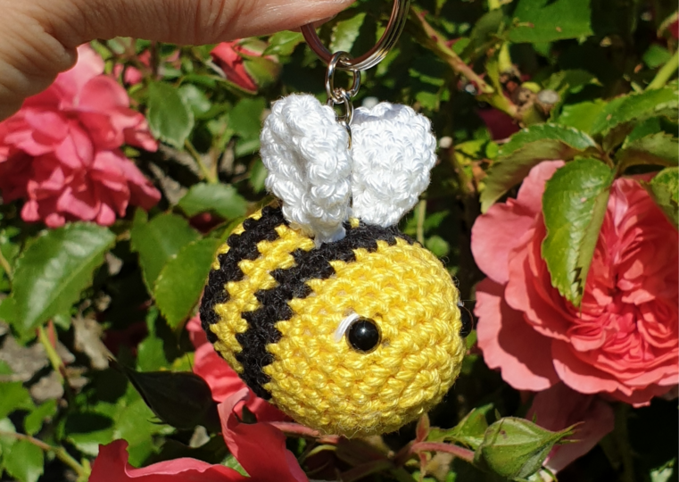 Häkle dir schnell und einfach eine kleine Baumel-Biene Sumsi.
