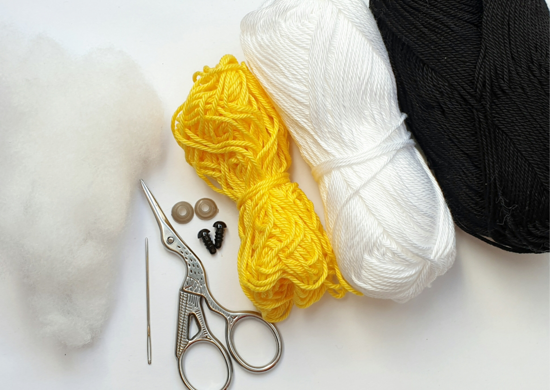 • Baumwolle z.B. Schachenmayr Catania, in den Farben Schwarz, Gelb und etwas Weiß