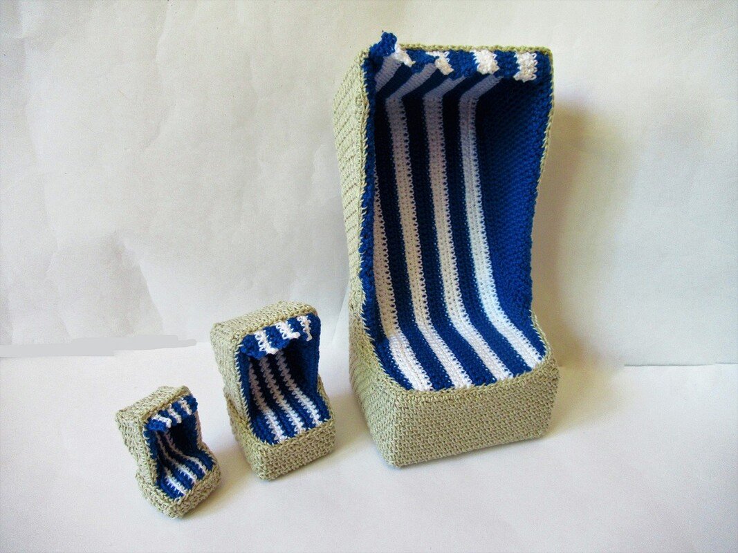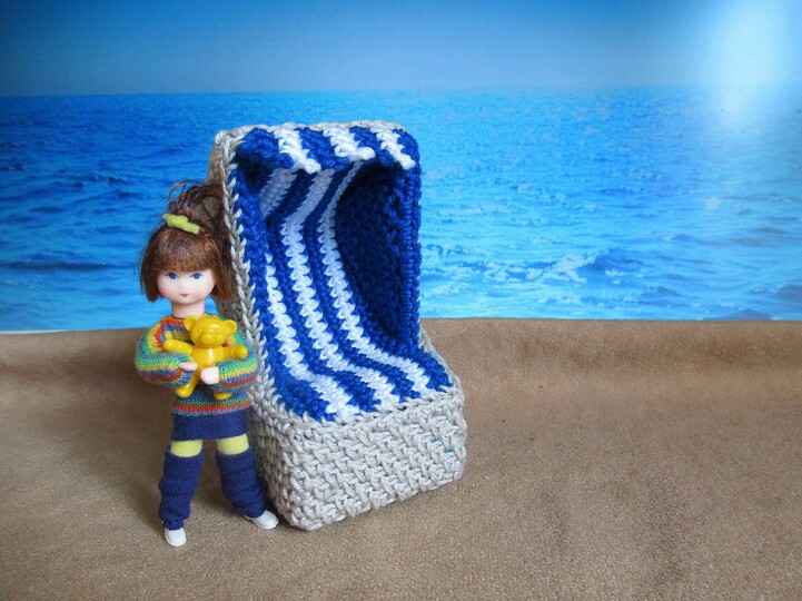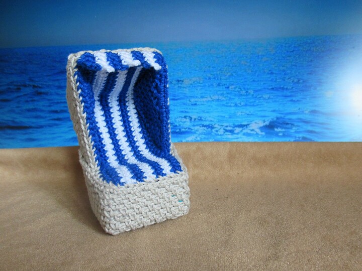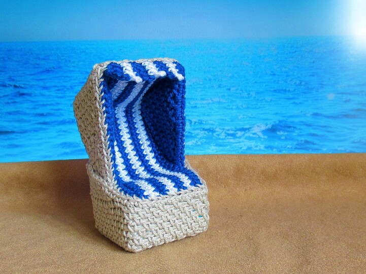Häkle dir einen Deko-Strandkorb, dessen Größe du selbst bestimmen kannst, je nachdem, ob du ihn für kleinere oder größere Püppchen, für einen Türkranz oder eine andere Dekoration verwenden willst.