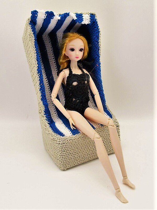 (Der gehäkelte Badeanzug der Puppe ist nicht Teil der Anleitung, du kannst ihn jedoch in meinem Shop hier finden: https://www.crazypatterns.net/de/items/40729/haekelanleitung-strandset-fuer-ankleidepuppen)
