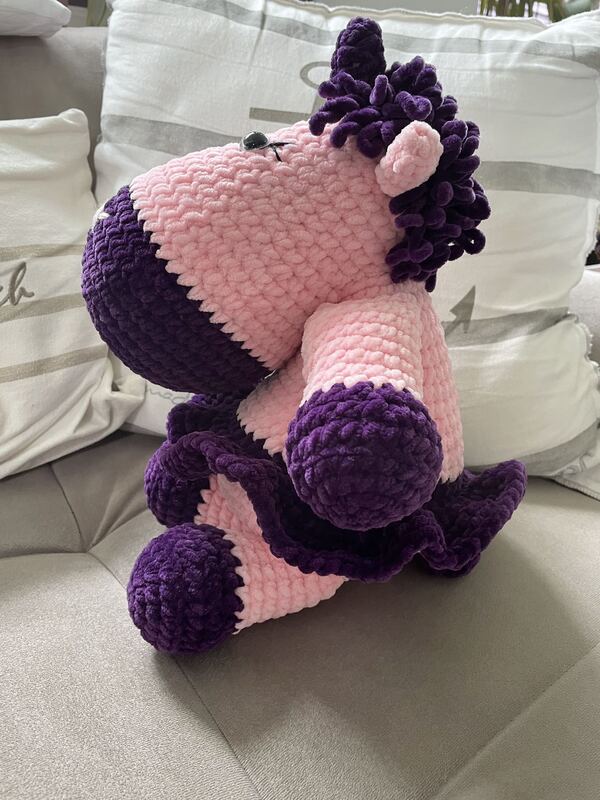 Mit dieser detaillierten Häkelanleitung kannst du deiner Kreativität freien Lauf lassen und dein eigenes einzigartiges Einhorn erschaffen. Emily Einhorn ist nicht nur niedlich, sondern auch als Ballerina verkleidet - ein wahrer Blickfang in jedem Kinderzimmer oder als Geschenk für einen Einhornliebhaber. Die Anleitung enthält leicht verständliche Schritt-für-Schritt-Bilder und klare Erklärungen, damit du problemlos durch den Häkelprozess navigieren kannst, unabhängig von deinem Erfahrungslevel. Das fertige Einhorn ist ca. 30 cm groß und wird mit hochwertiger Chenillewolle gehäkelt, die für ein unglaublich weiches und kuscheliges Ergebnis sorgt. Egal, ob du bereits Häkelkenntnisse hast oder gerade erst anfängst, diese Anleitung wird dir helfen, dein eigenes bezauberndes Einhorn zu erschaffen. Hole dir jetzt die Anleitung und tauche in die wunderbare Welt des Häkelns ein!