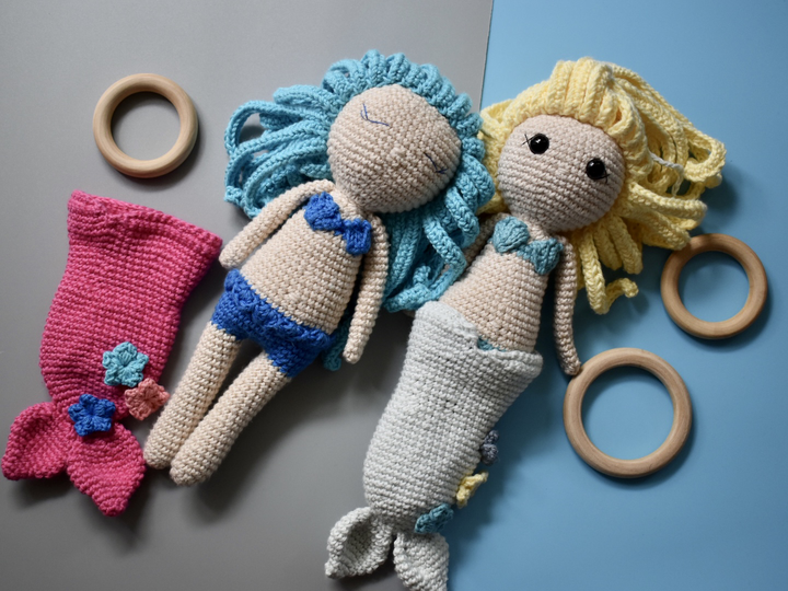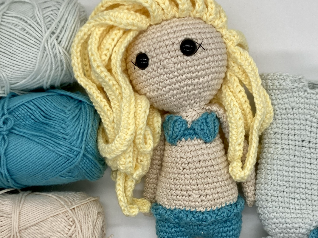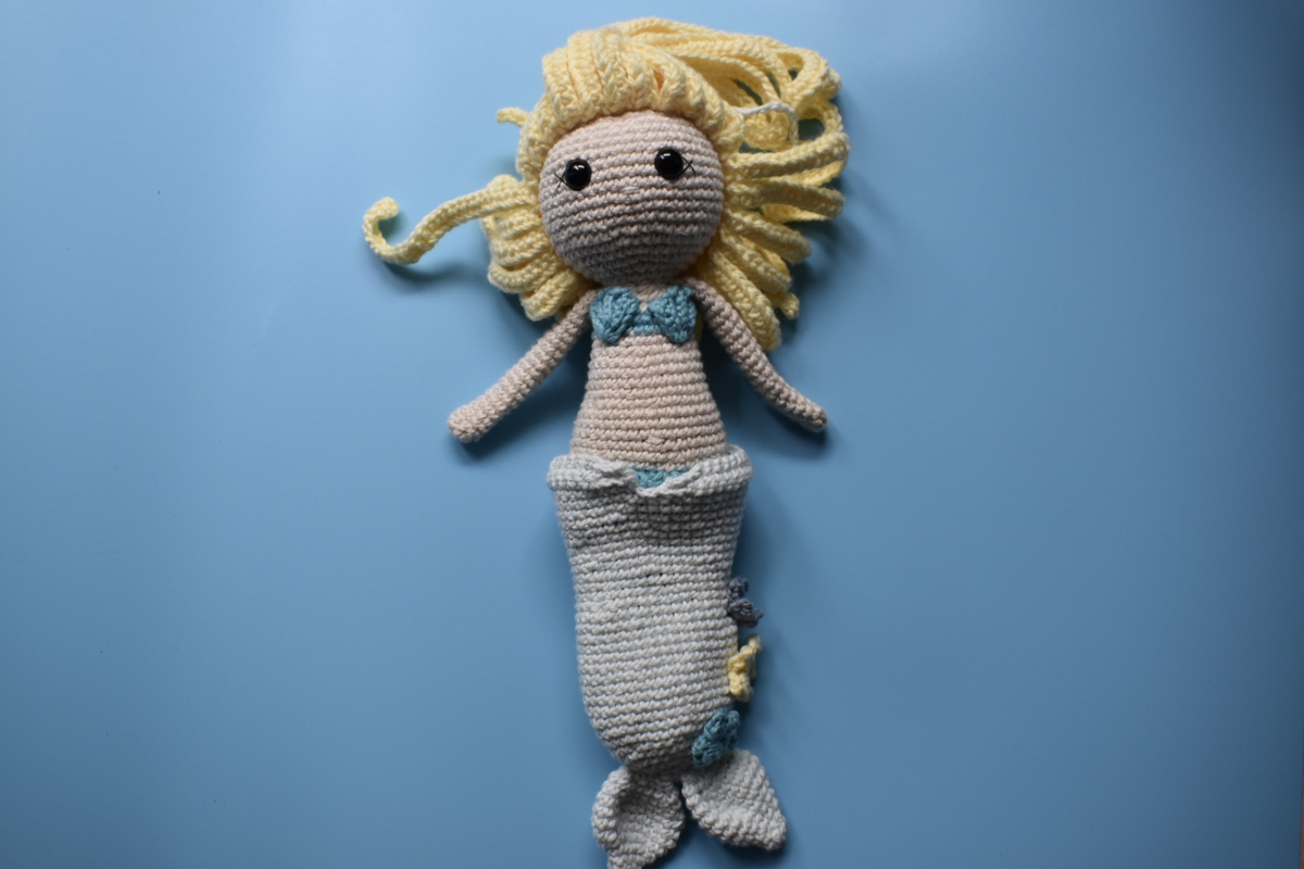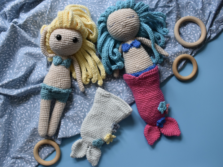 Diese Anleitung beinhaltet eine ausführlich bebilderte Anleitung auf 14 Seiten zur Herstellung einer kleinen Meerjungfrau mit abnehmbarer Flosse.