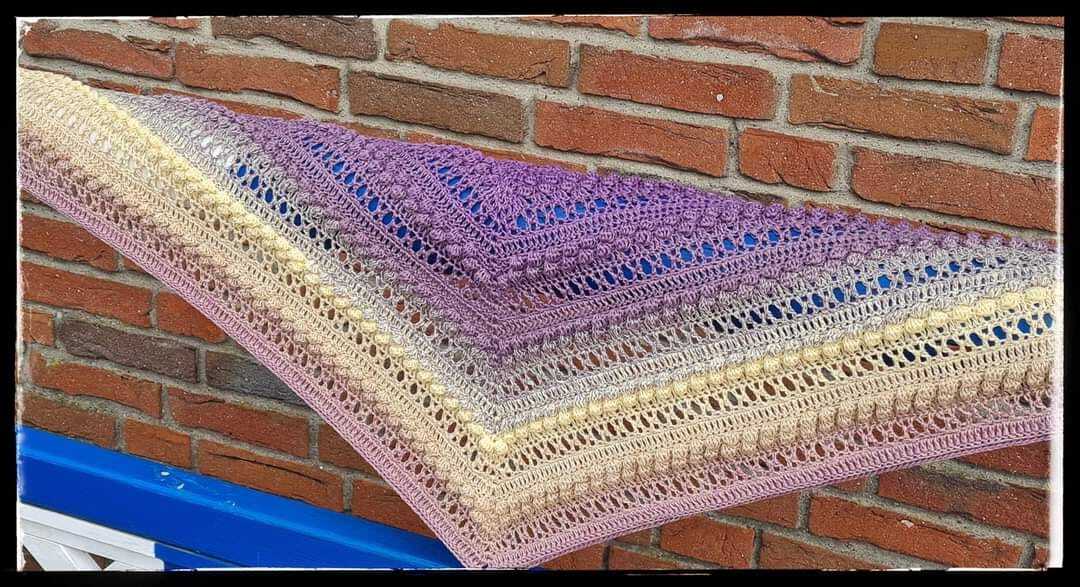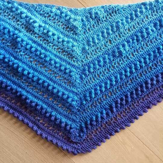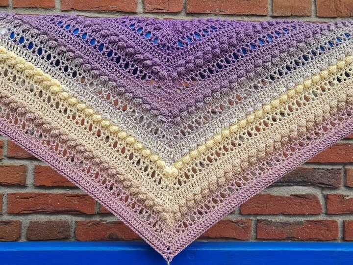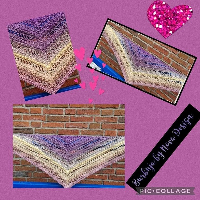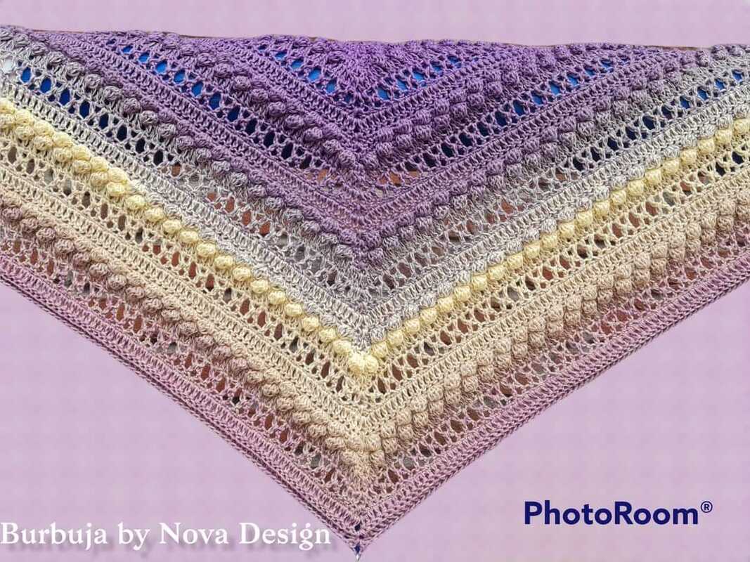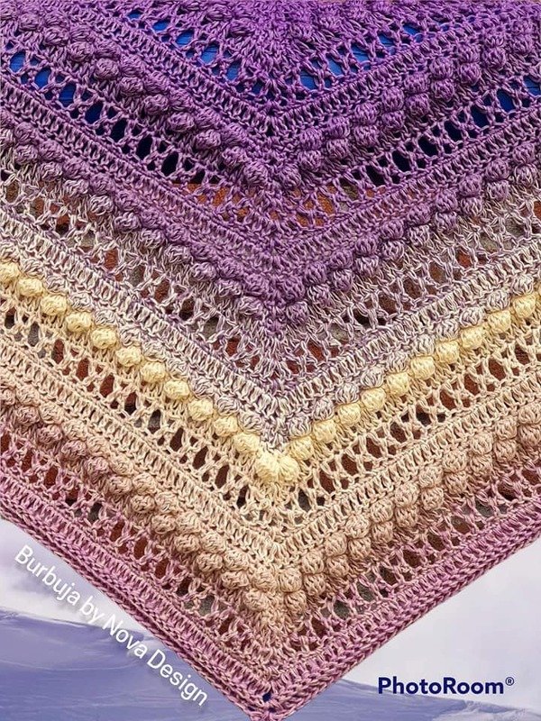 Beim Arbeiten des Tuches sah ich lauter kleine Bläschen, deshalb habe ich es „Burbuja“ genannt. Es handelt sich um ein einfaches Muster und trotzdem sieht es edel aus. Ein Hingucker für Jedermann, was in eurer Sammlung nicht fehlen sollte.