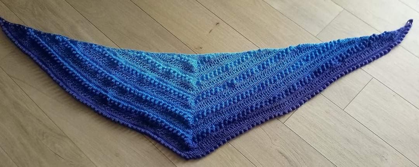 Die flache Variante des „Burbuja“, ist im Gegensatz zur klassischen Variante, länger und nicht so tief gearbeitetes Dreieckstuch.