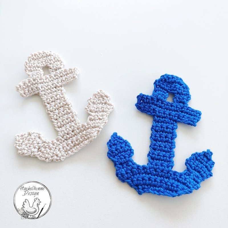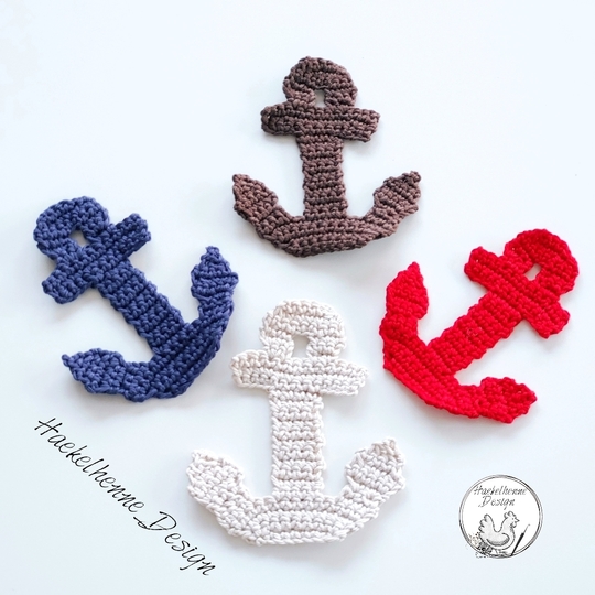 Die Anker Applikation ist für Anfänger geeignet. Er wird in Reihen, Lm und Fm gehäkelt. Das Ab-und Zunehmen von Maschen solltest du beherrschen.