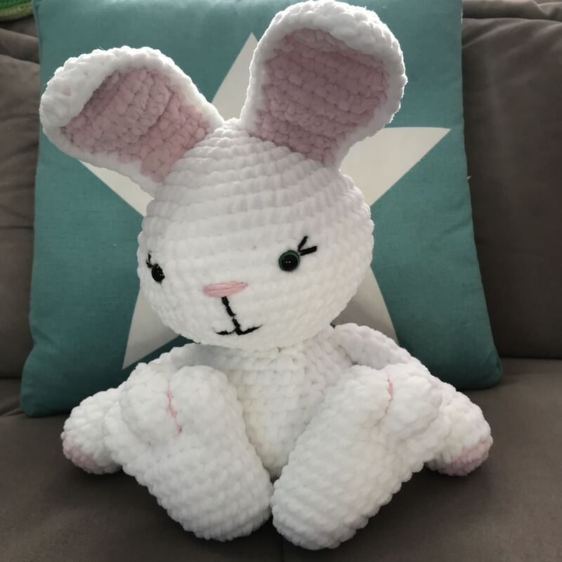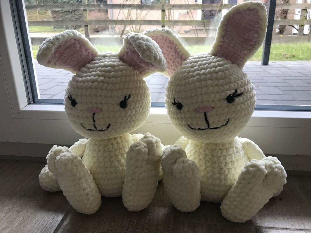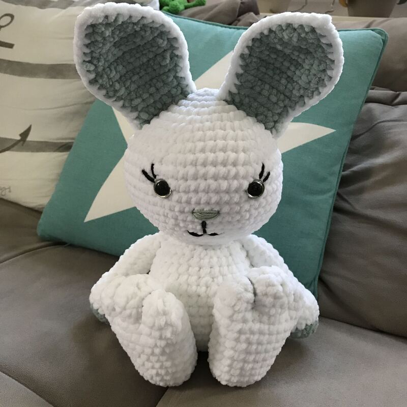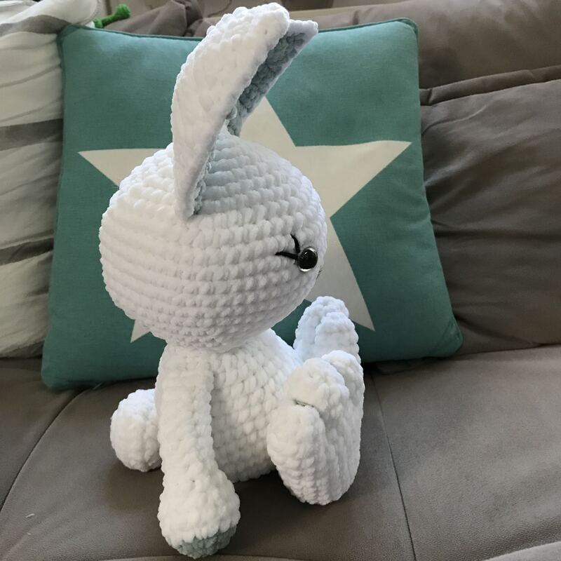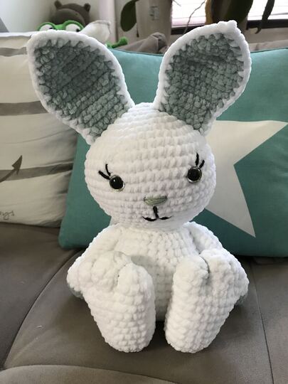 ca. 30cm mit der verwendeten Chenillewolle - mit aufgestellten Ohren ca. 45cm