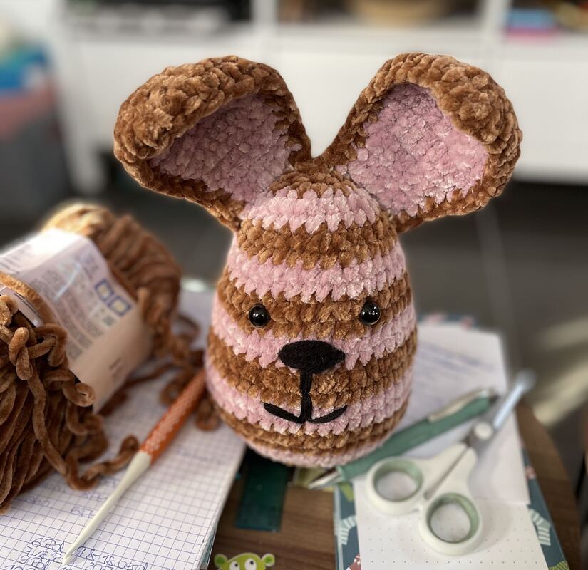 Hochwertiges Chenillegarn: Für diesen Häkelbegeisterten haben wir das kuschlig weiche Chenillegarn Myboshi Samt verwendet. Es fühlt sich nicht nur toll an, sondern verleiht dem Hasen auch eine flauschige Optik, die zum Knuddeln einlädt.