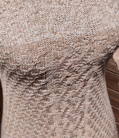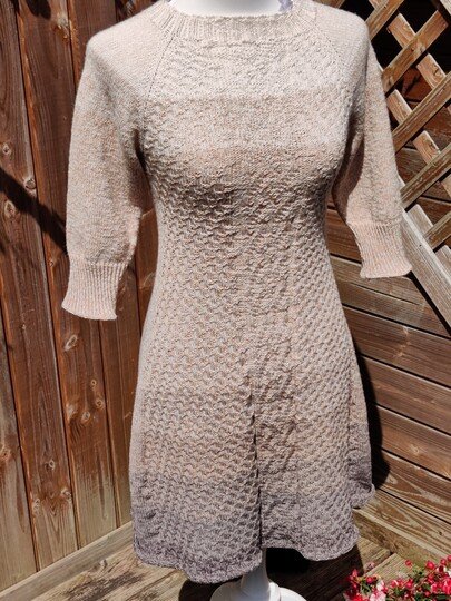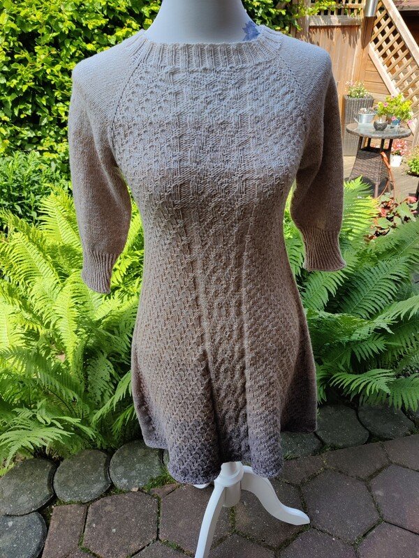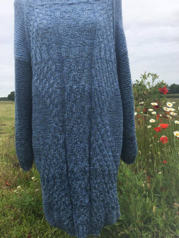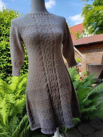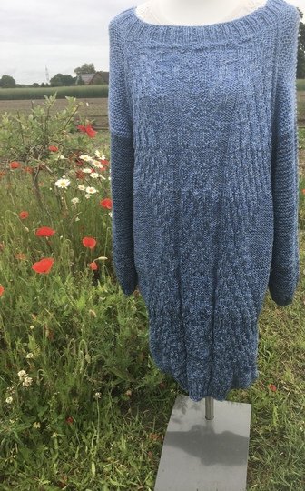 Eines meiner Testbienchen hat für sich die Anleitung insofern verändert, das sie einfach weiter gestrickt hat, bis sie die gewünschte Länge für ein Kleid hatte. So hat sie sich ein individuelles Stück gezaubert und mir die Fotos zur freien Verfügung übergeben :)