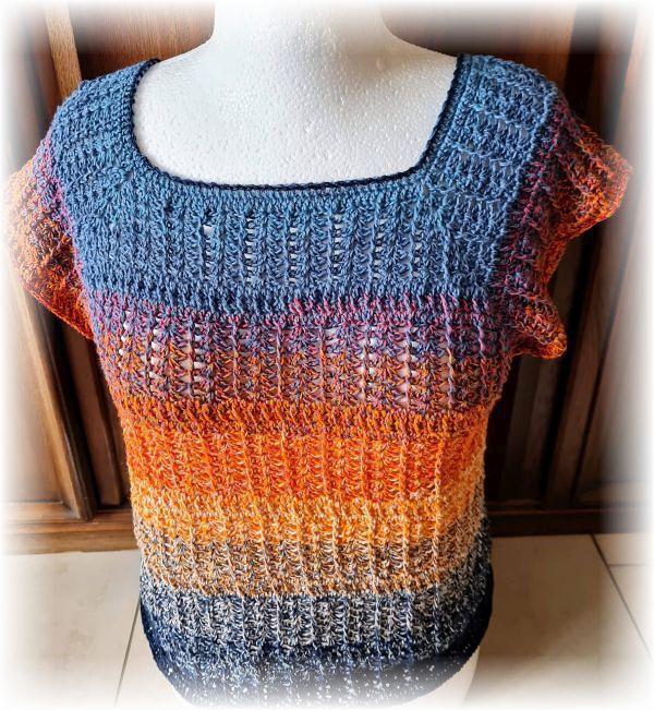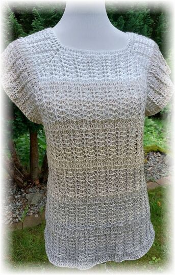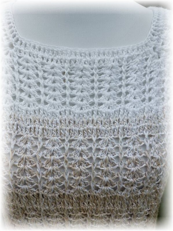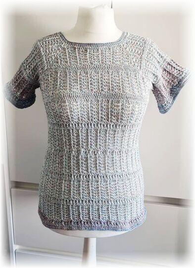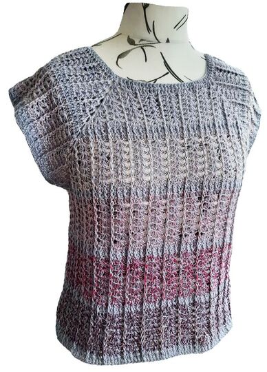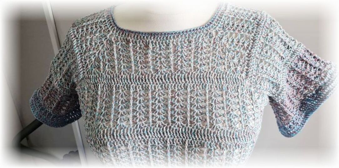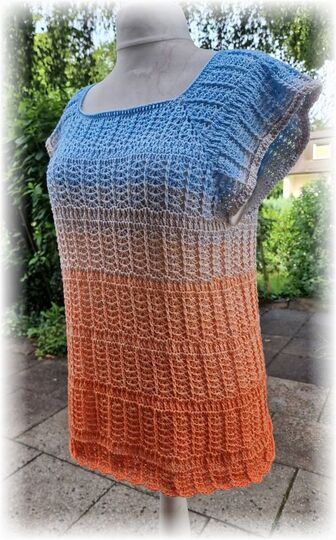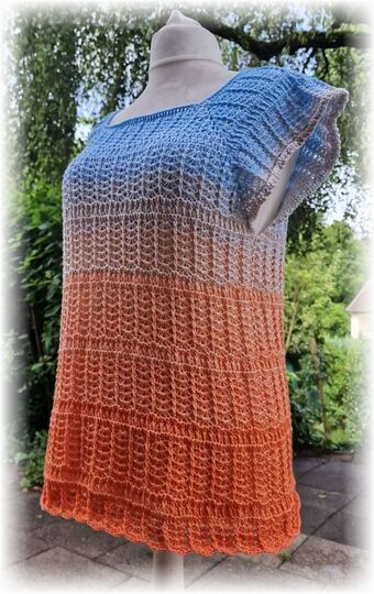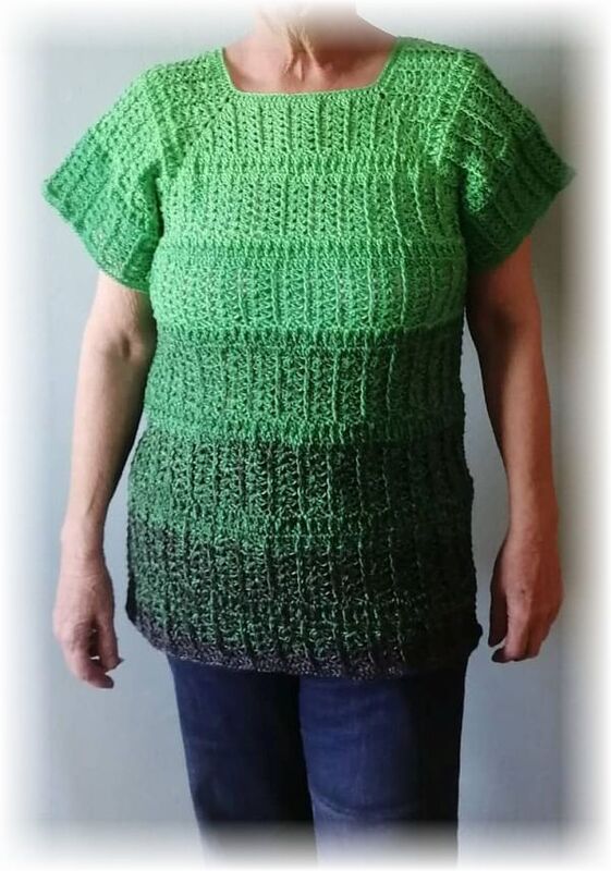 Abby wird von oben nach unten in Runden gehäkelt. Durch die Raglanschrägung ergibt sich die Weite.