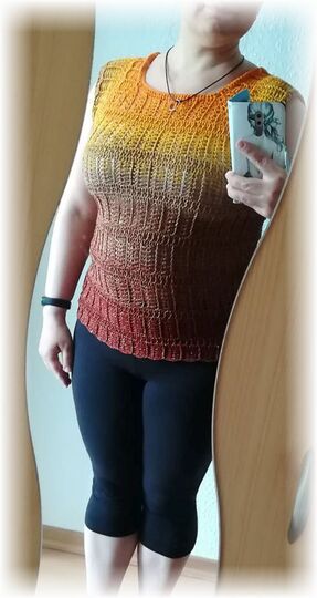 Wenn das Oberteil geschlossen wird, sind die Arme fertig und es kann in der gewünschten Länge in Runden weiter gehäkelt werden.