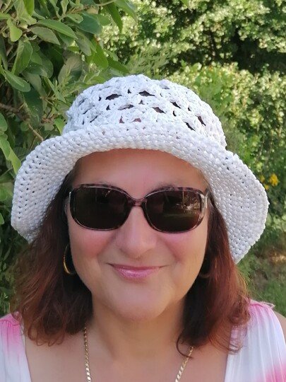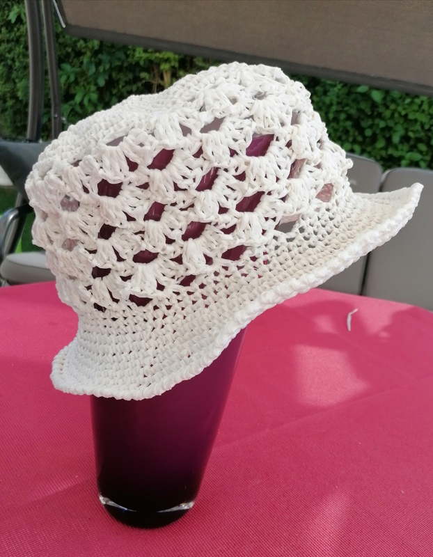 Der Hut wird aus traditionellen Papiergarn Rafia von Adriafil gehäkelt.