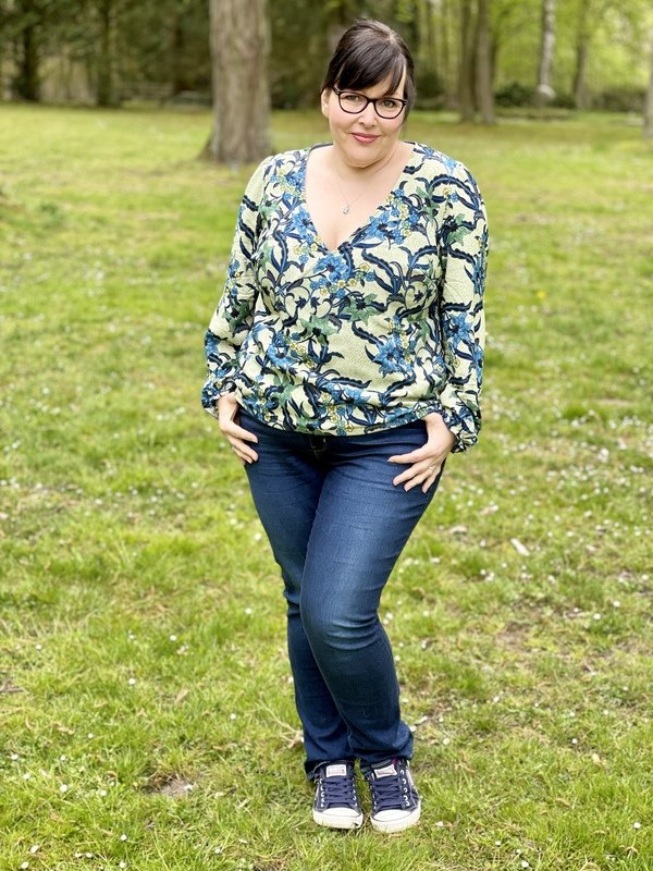 Die Bluse ist auf weich fallende, fließende, gewebte Stoffe ausgelegt wie zum Beispiel gewebte Viskose, Javanaise, Georgette, etc. Du kannst die Bluse aber auch aus Musselin oder Leinen nähen.