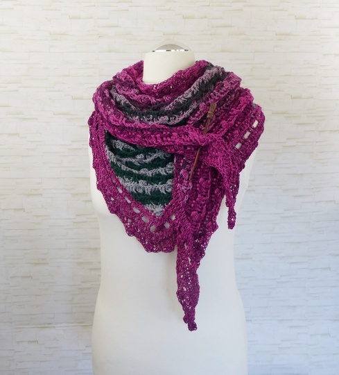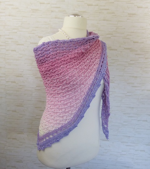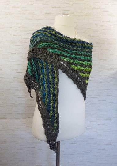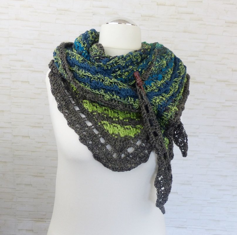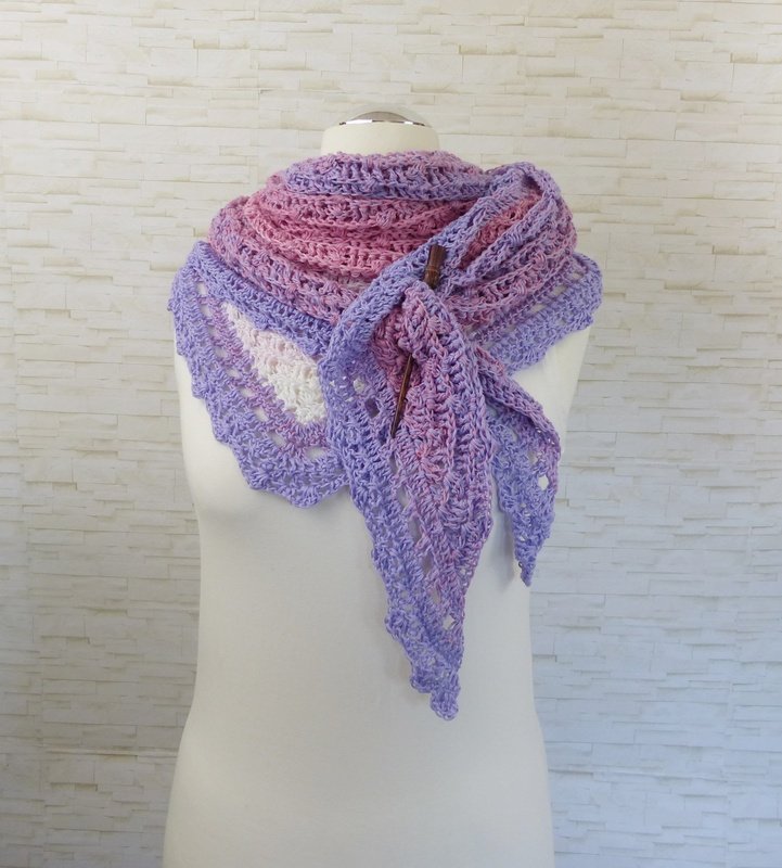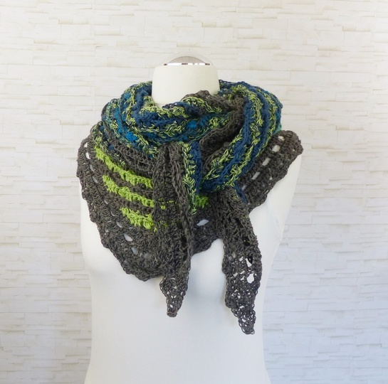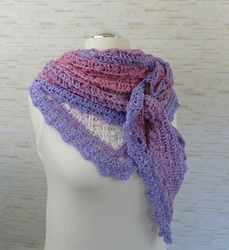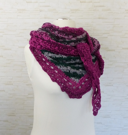 Das Tuch ist eher schmal bzw. länglich, daher auch ideal als Schaltuch zu tragen. Die Größe kann selbst bestimmt werden, da sich das Muster alle zwei Reihen wiederholt. Das Muster wirkt beidseitig => daher muss man beim Tragen nicht aufpassen, dass die "richtige" Seite oben ist => somit ein schönes Wendetuch.