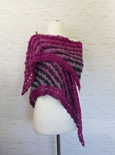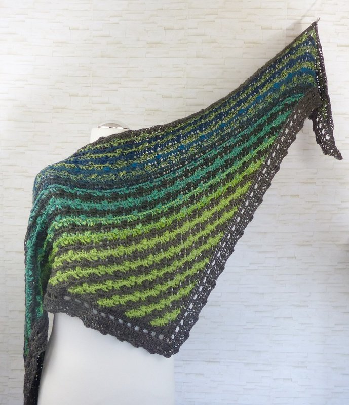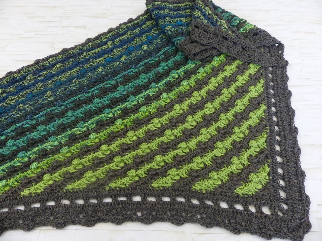 "Magic Strip 4.0" ist ein Häkeltuch mit einem einem Reliefmuster. Am Besten kommt das Muster zur Geltung, wenn es zweifarbig gehäkelt wird. Dafür eignet sich natürlich ideal eine Wollresteverwertung. Natürlich sieht es mit einem schönen Farbverlaufsgarn auch super aus.