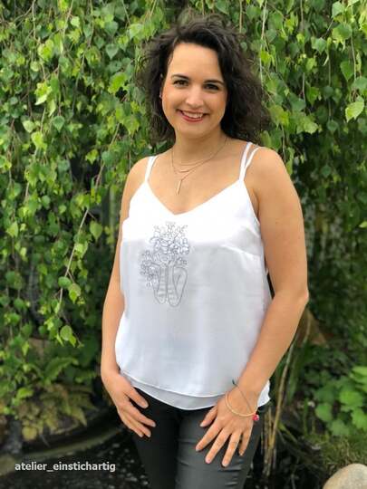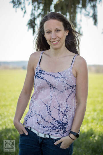 Das Top ist auf weich fallende, fließende, gewebte Stoffe ausgelegt wie zum Beispiel gewebte Viskose, Javanaise, Georgette, etc. Du kannst das Top aber auch aus Musselin oder Leinen nähen.