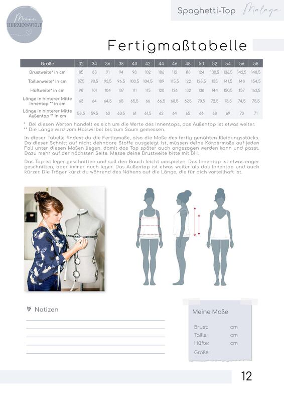 Das eBook Spaghetti-Top „Malaga“ beinhaltet ein Schnittmuster in den Größen 32-58.