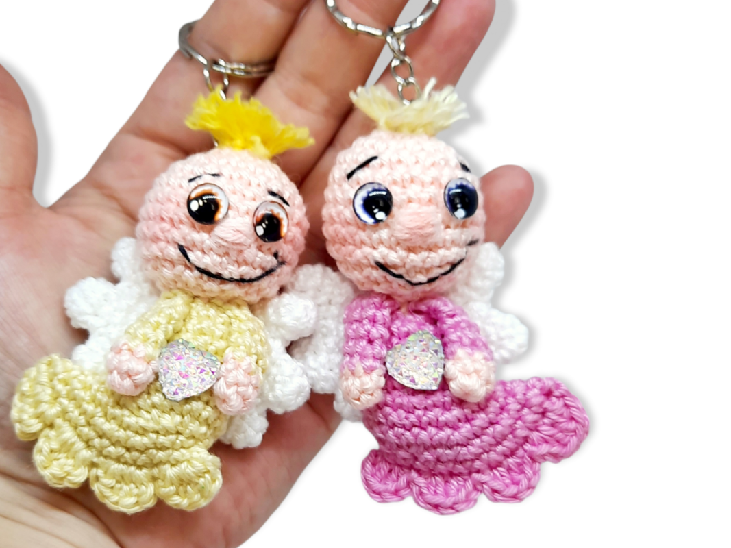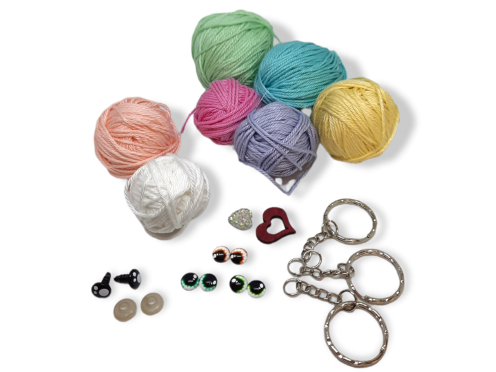 Diese süßen kleinen Schlüsselanhänger sind super um Wollreste zu verarbeiten. Sie sind ganz schnell gehäkelt und können nach Lust und Laune dekoriert werden (mit Buchstaben oder kleinen Herzen , usw)