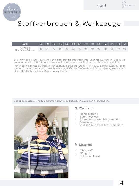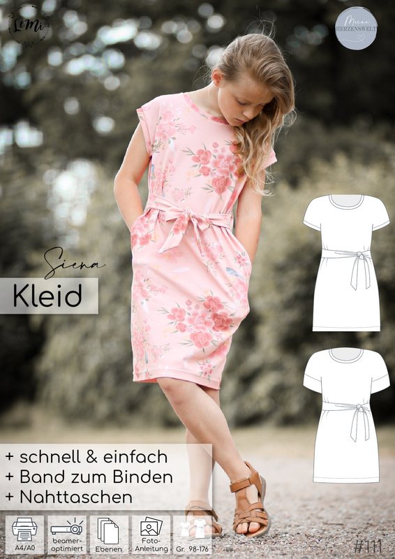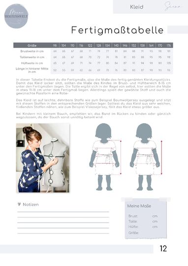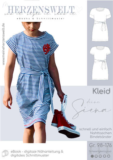 Das eBook Kleid „deine Siena“ beinhaltet ein Schnittmuster in den Größen 98-176.