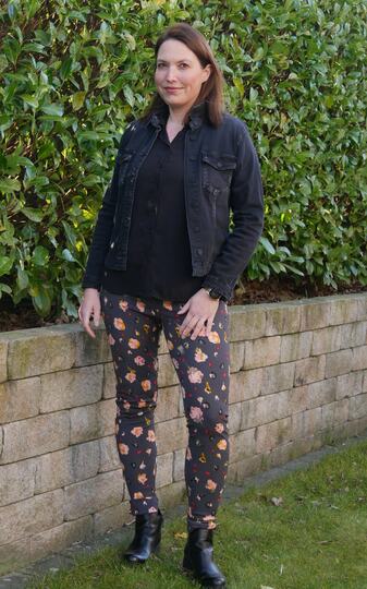 Der Schnitt ist auf dehnbare Stoffe wie z.B. Baumwoll- und Viskosejersey, Mesh, Lycra, Aktivstoffe, Jeansstoffe, Kunstleder oder ähnliche Stoffe, mit einem Elasthananteil von ca. 5% ausgelegt. Optional benötigst du zusätzlich Gummiband.