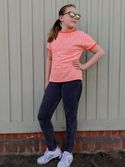 Cara ist ein schnell und leicht genähtes legeres Basicshirt mit überschnittener Schulter, einem weiten Ausschnitt und Bündchenabschlüssen an Ärmeln und Ausschnitt. Das Schnittmuster enthält auch eine kürzere Cropversion, also ein Cropshirt, welches vor allem für ein Sportoutfit zusammen mit unserer Leggings Arizona und unserem Tanktop Lucy eine tolle Kombination ist.