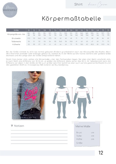 Das Shirt oder Tshirt „deine Cara“ beinhaltet ein Schnittmuster mit den Größen 86-176.