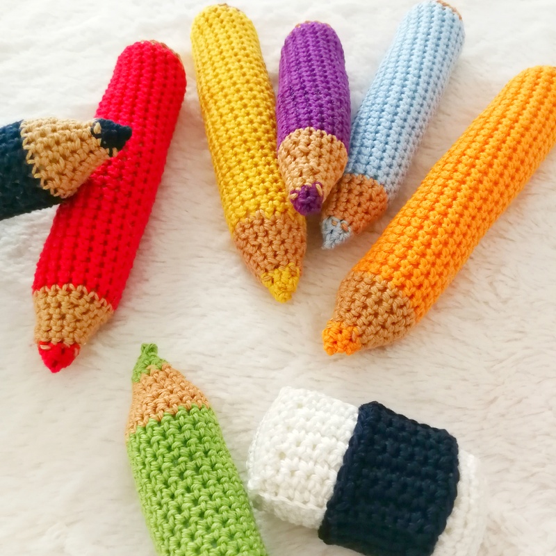 Mit Hilfe der Anleitung lassen sich Blei- / Buntstifte und dazu ein Radiergummi häkeln.