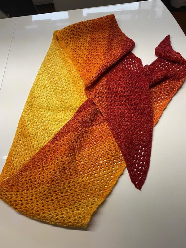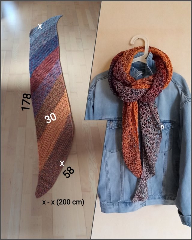 Individuell, da der Schal beliebig breit und lang gehäkelt werden kann,
