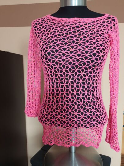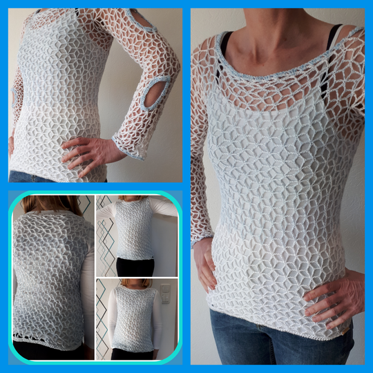 Beim vorgestellten Produkt handelt es sich NICHT um das fertig gehäkelte Kleidungsstück, sondern um eine Anleitung in Schriftform mit Häkelschrift, um dieses Kleidungsstück selbst zu häkeln.