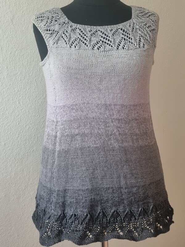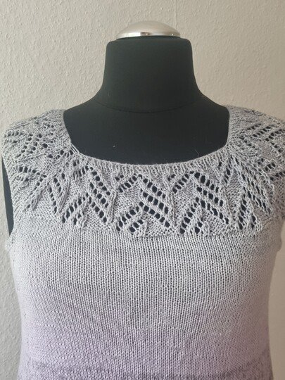 Das schöne Ajourmuster kann nur oben als Dekolletee und für die Träger gestrickt werden, Du kannst es aber auch das gesamte Top "herunterlaufen" lassen oder oder oder :) Der Phantasie sind keine Grenzen gesetzt und erlaubt ist, was DIR gefällt ;)